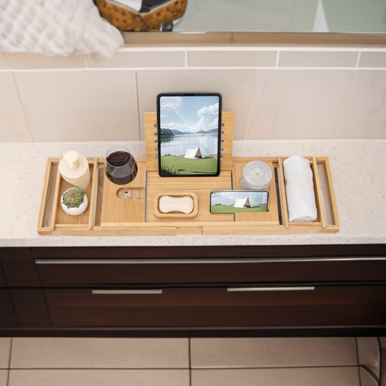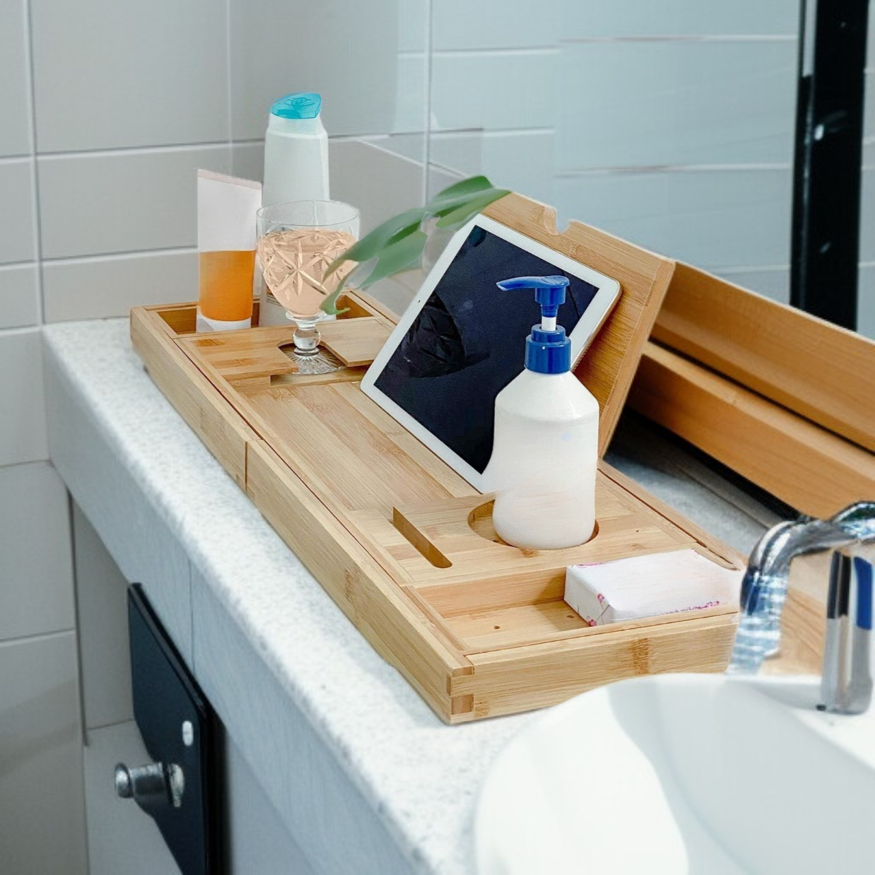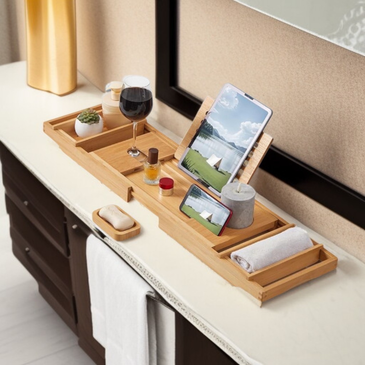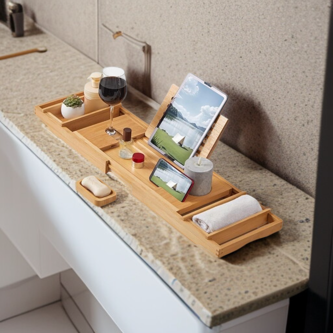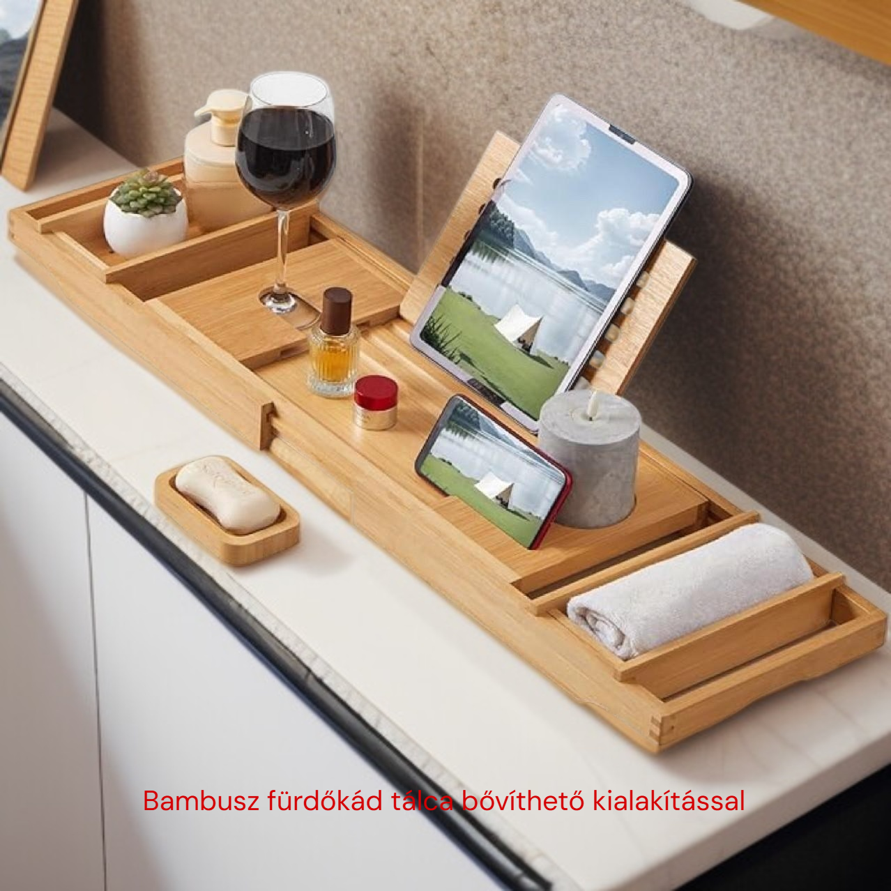 Bambusz fürdőkád tálca